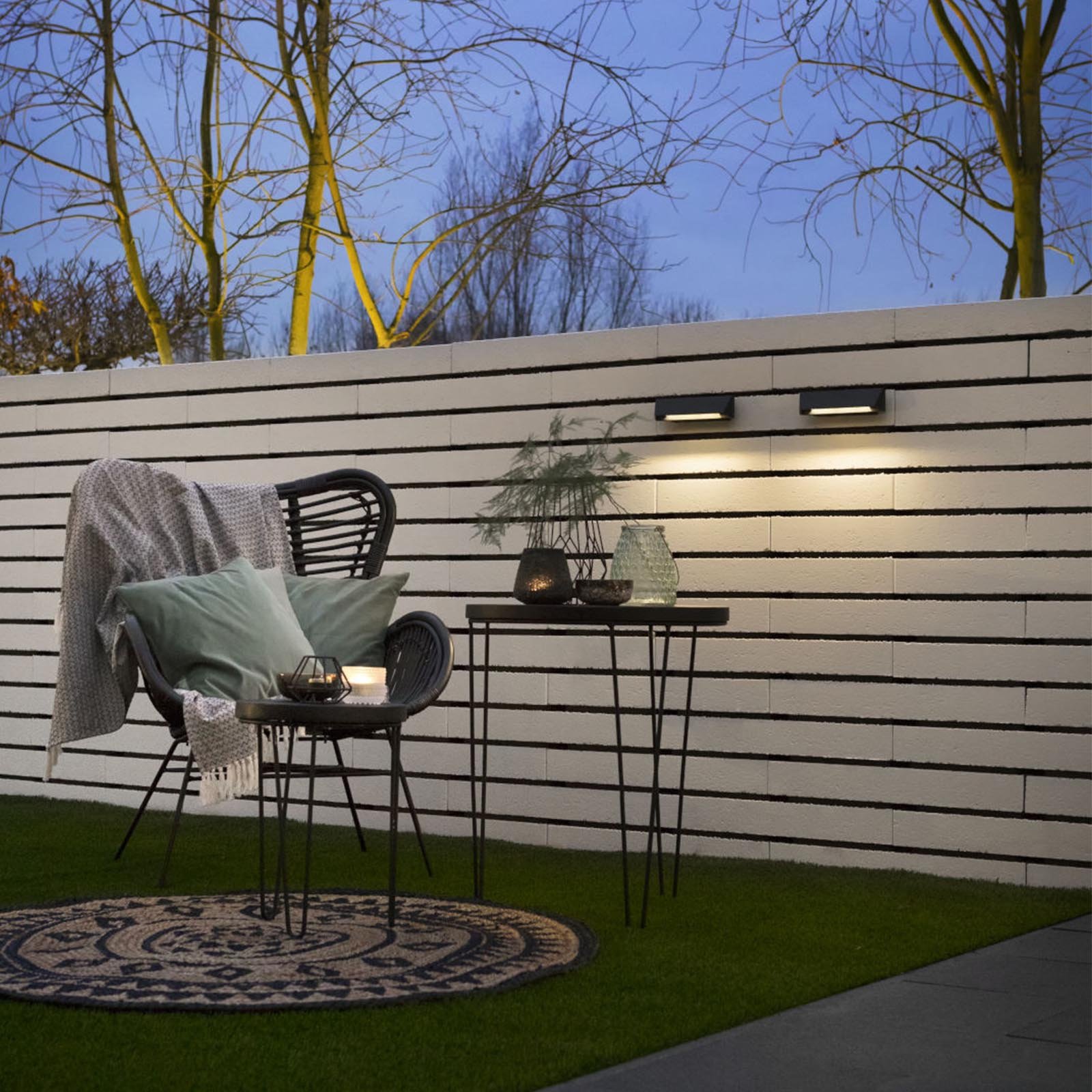 De WEDGE SLIM DARK is een slank wandarmatuur met een brede lichtuittrede die perfect is om te gebruiken als oriëntatieverlichting, bijvoorbeeld op een laag muurtje langs een pad of oprit.